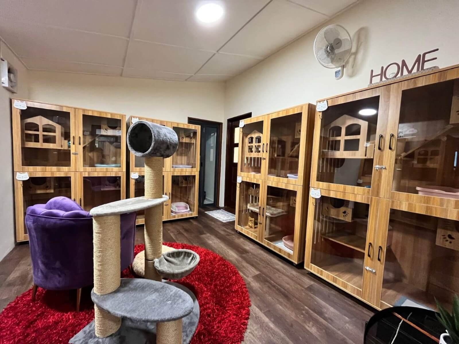 Lana & Louie Suites offers a holistic cat boarding experience with modern facilities and specialized grooming services.